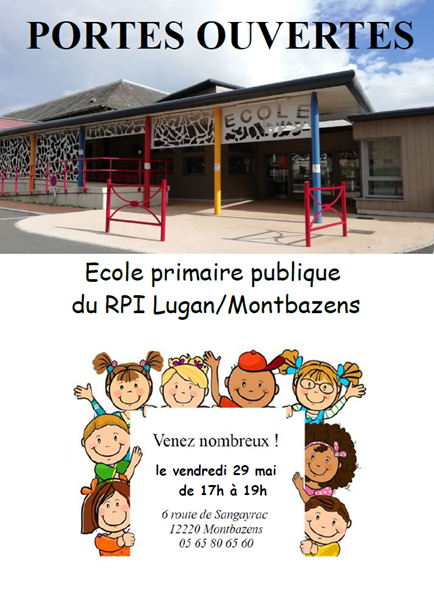 Les enseignantes et l’équipe municipale seront présents de 17H à 19H à l’occasion des portes ouvertes. Ecole Publique : 6 Route de Sangayrac 12220 Montbazens N’hésitez à venir visiter l’école et rencontrer l’équipe pédagogique.