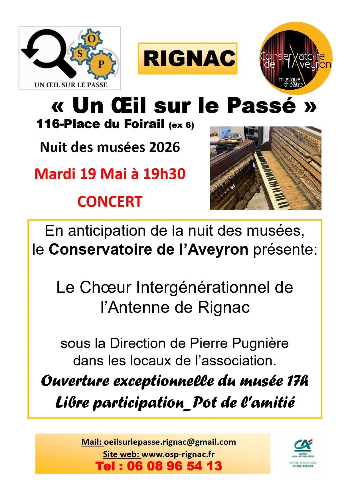 En avant-première de la Nuit des musées 2026, l’association « Un oeil sur le Passé » s’est associée au Conservatoire départemental de musique pour offrir un concert dans les locaux du musée à 19:30 (en exterieur si le temps le permet).