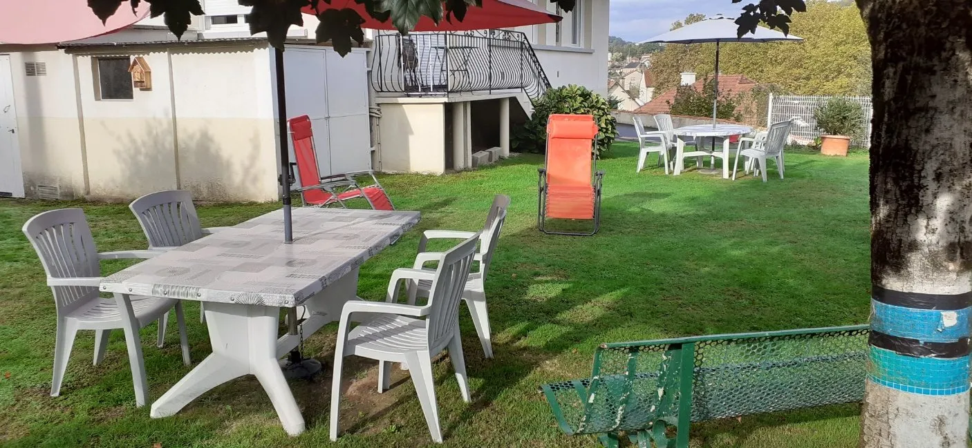 C’est dans un cadre fleuri et verdoyant, et au rez-de-chaussée surélevé (6 marches) de la maison des propriétaires que se trouve ce T2 meublé. Il offre tout le confort espéré : cuisine aménagée avec lave-linge, salon avec 1 canapé, possibilité d’ajouter un lit 1 place, 1 fauteuil en cuir, téléviseur, WIFI (gratuite), 1 chambre avec 1 lit en 160 (matelas 20 cm d’épaisseur), 1 armoire penderie, salle de bain (douche antidérapante), WC séparé. Sols carrelés, chauffage électrique, VMC. A l’extérieur possibilité de profiter à volonté du grand espace détente (relaxes, tables, parasols, chaises, barbecue, etc). Tout en étant dans la ville et près de toutes les commodités, l’environnement est très calme (vous serez surpris). Vue sur le Centre Thermal qui est à 10 minutes à pied et 4 minutes en voiture. Grand parking dans la propriété. Vous trouverez à l’extérieur du meublé un poste de rechargement électrique pour voiture hybride rechargeable, un compteur vous indiquera les KW utilisés