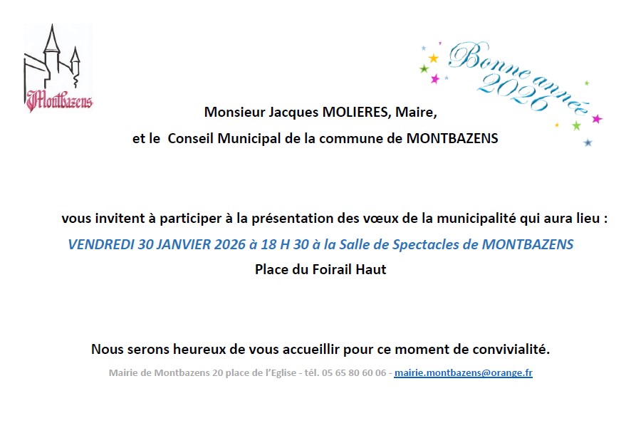 Présentation des vœux de la municipalité le vendredi 30 janvier 2026 à 18h30